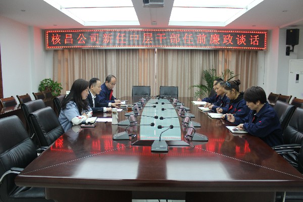 2018年10月9日上午,核昌公司黨委書記、董事長(zhǎng)王超宏,紀(jì)委書記梁英平,對(duì)新任中層干部進(jìn)行了集體任前談話和廉政談話。會(huì)議由黨群工作部部長(zhǎng)李榮主持。...