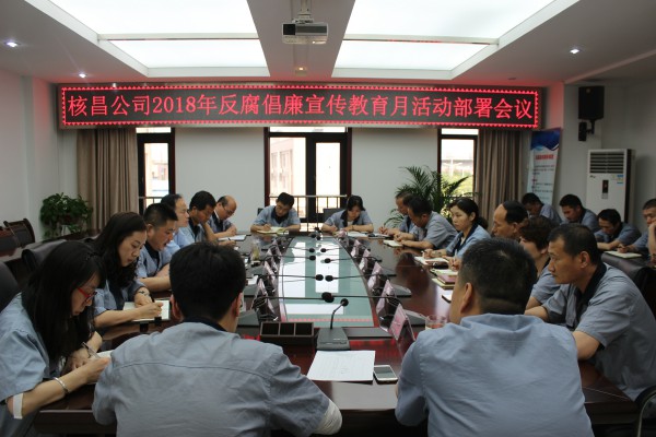 2018年5月25日,為深入落實(shí)全面從嚴(yán)治黨,嚴(yán)守黨的規(guī)矩,增強(qiáng)黨員干部廉潔自律意識,推動(dòng)公司監(jiān)察工作又好又快發(fā)展。核昌公司召開2018年反腐倡廉宣傳教育月活動(dòng)部署會議。核昌公司領(lǐng)導(dǎo)...
