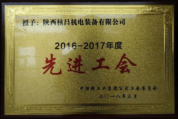 中陜核工業集團公司工會委員會“2016-2017年度先進工會”稱號
