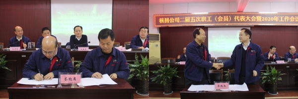 接下來會(huì)議轉(zhuǎn)為2020年工作會(huì)。首先由工會(huì)主席李偉傳達(dá)了集團(tuán)公司2020年職代會(huì)、工作會(huì)議精神及集團(tuán)公司董事長張斌成講話精神。其次,黨委委員、副總經(jīng)理張琳對(duì)2019年公司經(jīng)營考核結(jié)果進(jìn)行了通報(bào),紀(jì)委書記任中賢宣讀了《2019年先進(jìn)集體和個(gè)人表彰決定》,公司領(lǐng)導(dǎo)對(duì)獲得先進(jìn)的集體和個(gè)人進(jìn)行頒獎(jiǎng)。黨委副書記、總經(jīng)理?xiàng)钫?span>與各事業(yè)部負(fù)責(zé)人簽訂了《2020年經(jīng)營目標(biāo)責(zé)任書》,黨委書記王超宏分別與各黨支部書記簽訂《黨風(fēng)廉政建設(shè)責(zé)任書》,與公司工會(huì)簽訂了《工資集體協(xié)商協(xié)議書》、《女職工特殊權(quán)益保護(hù)專項(xiàng)合同》。隨后,對(duì)中層干部進(jìn)行了民主測(cè)評(píng)。