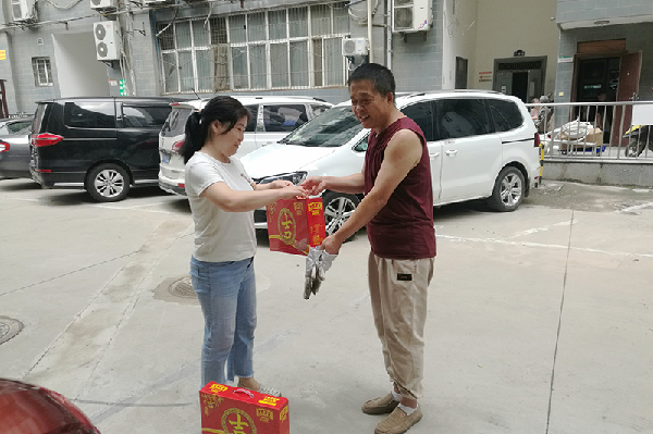 炎炎夏日送清涼,絲絲關愛入心田。一份清涼,一份關懷,一份愛心,在這個一年中最熱的時候,物業公司經理劉亞紅帶著防暑降溫用品,慰問面對連續高溫,身處物業一線的全體員工,送去了公司對一線員工的深深關愛之情。